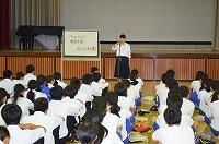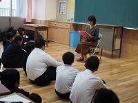 りんごの会の方に読み聞かせをしていただきました。臨場感あふれる朗読に、生徒たちは、引き込まれていました。