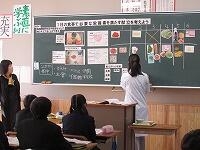 昨日、1年1組で家庭科の研究授業がありました。中島教頭先生と学校栄養士の青木先生が「1日の食事で必要な栄養素を満たす献立を考えよう」というねらいで授業を行いました。生徒たちは、だされた質問の答をよく考えていました。