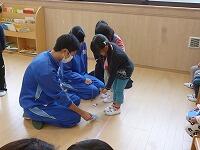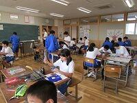 1年生が小学校の各学年に分かれて授業を通して小学生と交流をしました。
