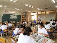 1校時3年4組で、久保田先生が国語の研究授業を行いました。「和歌の世界が広がるようにグループで音読をしよう」というねらいでグループ毎に発表の練習をし、感情をこめて発表しました。