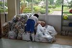 多くの生徒が、夏休みに貯めておいた大量のアルミ缶を持ってきました。
