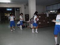 緑化委員会は花壇の草むしりや枯れ草の片付けをしました。美化委員会は、清掃用具の点検・補充をしました。短い時間でしたが生徒一人一人がよくやっていました。