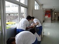 大平中学校には、平成17年度卒業生が寄贈してくれた冷水器が2台あります。今日は、とても暑く、生徒たちが冷水器を盛んに利用していました。放課後、保健委員の皆さんが、きれいに掃除をしてくれました。
