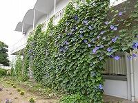 校舎前の朝顔が、2階まで伸びてきました。花も写真のようにたくさん咲くようになりました。