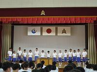 全校集会で、各部の部長が、今夏の大会やコンクールに向けて、今まで培ってきた力を発揮できるよう決意を発表しました。