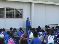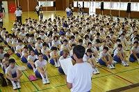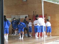 外は雨が降っており、グランドもぬかるんでいるので体育館で行いました。