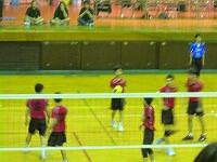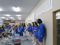 今日の部活動の様子です。明日は県大会なので、風が強い中練習をしています。今までの努力を無駄にしないよう頑張ってほしいです。