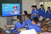 3年2組の学級活動の授業では、修学旅行2日目の班別活動計画をプレゼンテーションソフトで紹介しました。