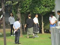 部活動パレードの練習をしてました。