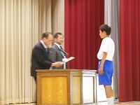 第1学期の学級委員長の任命を行いました。代表者がしっかりした態度で任命書を受けとりました。