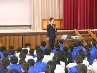 6名の先生方が転出します。全校生でこれまでの感謝の気持ちを伝えました。