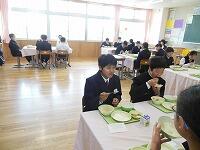 新学期から1週間が過ぎ,2年生も新しいクラスに慣れました。給食では,新しい友達と会話を楽しみながら食事をしています。