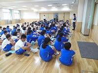 1年生が学年集会で,5月19日,20日に行う宿泊学習について説明を行いました。また,各場面に応じた並び方等を確認しました。