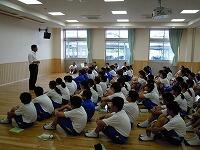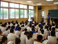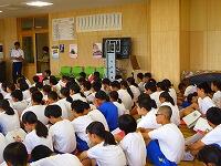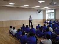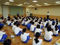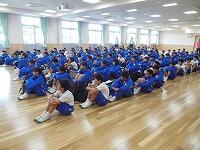 明日,終業式を迎え,21日から夏休みに入ります。本日は,夏休み中の学習や生活についての話を中心に集会を実施しました。また,21日から運動部は地区大会が始まります。地区大会に向けての心構えも確認しました。