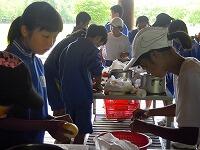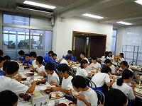 昼食は保護者の協力のもと,できたてのカレーを食べました。その後,もうすぐ最後の大会を迎える,3年生への激励会を行いました。