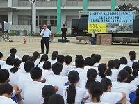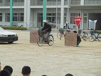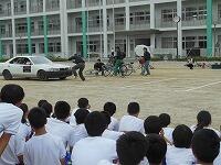 スタントマンに方による,交通安全教室を行いました。自転車や車を使い,これまでの事故を再現し,生徒たちは事故の恐ろしさと,自転車も利用のしかたで大きな事故につながることを実感しました。また,地域の方々の多くの参観がありました。