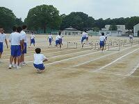 教育実習生が,研究授業を行いました。ハードルの授業で,ポイントをはっきりさせながら練習を行いました。