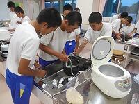食事は保護者の協力を得ながら自分たちで用意しました。布団等は各自が家から持ち込みました。入浴は,近くの公共の入浴施設を利用しました。
