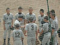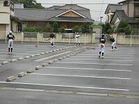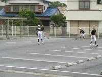 野球部 雨のため校庭が使えず,駐車場で練習を行いました。