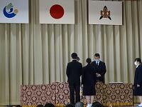 修了式を行いました。Zoomを用いて,各教室に映像を映しました。各クラスの代表生徒が修了証を校長先生から受け取りました。また,式後に書道に関する表彰を行いました。
