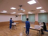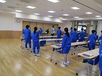 卒業式の会場の準備を行いました。2年生が体育館内の会場準備を,1年生が校舎内外の環境整備を行いました。