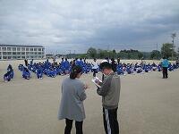 1年生女子の保健体育の授業のようすです。弓道の学習に入りました。射法八節をひも弓で学習しました。