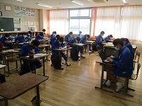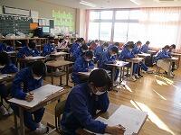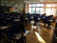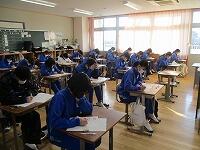 3年生が学年末テストを行っています。最後の定期テストになります。皆一生懸命問題を解いていました。