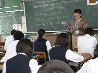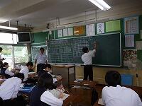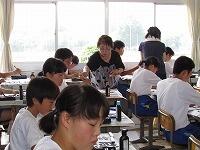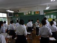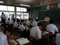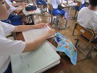 1年生の国語は書写の授業でした。今回は、地域ボランティアの関塚トヨさんにも指導をお願いしました。関塚さんは、生徒一人一人に丁寧に指導してくださいました。