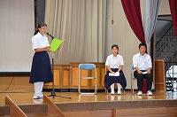校長先生から式辞をいただき、学年代表生徒による「1学期を振り返って」の作文発表がありました。