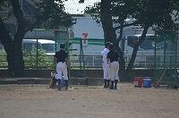 校庭では野球部とハンドボール部、ソフトテニス部が元気に練習していました。