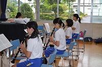 音楽室では、吹奏楽部が熱心に練習しています。