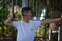 学校では弓道部と吹奏楽部が活動していました。今日は雨でしたが、弓道場では、おやじの会皆様の協力により設置されたひさしで雨が遮られ助かっています。