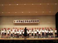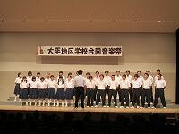 大平地区の小学校4校、中学校2校、高等学校1校による音楽祭が大平文化会館で行われました。大平中学校は、合唱コンクールで最優秀賞を獲得した3年1組の合唱と吹奏楽部の演奏をしました。