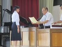 1学期終業式を行いました。今年度は昨年ほど高温でなかったので,体育館で実施しました。各学年の代表の生徒が1学期の反省を発表しました。
