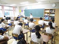 2年2組において数学の研究授業を行いました。「点字の規則性を見つけよう」というねらいのもと,生徒たちは規則性について友達と意見を交換しながら考えていました。