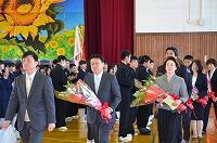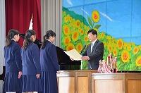 第2部では、映画「ボクたちの交換日記」上映、3年生への花束、記念品贈呈、3年生お礼の言葉が行われました。