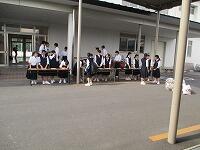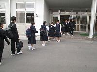 2年生が職場体験学習の各事業所との打合せに行きました。昇降口で確認を行い,グループごとに体験先に向け出発しました。
