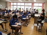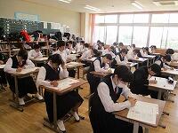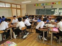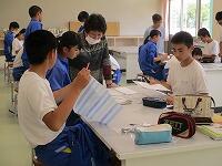 地域のボランティアの方々を招き,家庭科でチャコペンで縫いしろを記入する学習を行いました。多くのボランティアの方々に来ていただいたおかげで,一人ひとりの生徒に細かな点まで確認することができました。
