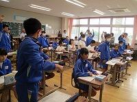 2年4組において,英語の研究授業を行いました。災害時の避難所での生活について,しなければならないこと,してはならないことをmustやmust notを用いて表現しました。