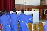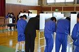 生徒会役員選挙が12月12日に行われます。今週はその運動期間で、立候補者が3年生の昇降口で投票を呼びかけていました。