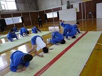 須藤先生が、「マット運動の演技をビデオの映像を見て修正したり、仲間から改善点をアドバイスされたりすることができる」ことをねらいとして授業を行いました。1年3,4組の男子は、とても元気があり、きびきび行動して素晴らしい授業でした。