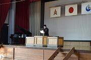 大平中学校は、「あいさつ運動」、「アルミ缶回収」、「廃品回収」、「段ボールボランティア」、「桜並木清掃」、「福祉委員会活動」について報告しました。3人とも、はっきり、元気に発表することができました。