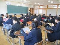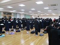 離任式を行いました。卒業した3年生も登校し,全校生で転任される先生方を送りました。今年度は5名の先生方が転任します。新しい勤務地でのご活躍を期待いたします。