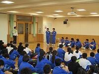 新入生オリエンテーションを行いました。2,3年生が新入生を学校まで案内し,学校生活についての説明や校歌の練習などを行いました。