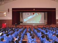 1年生を対象にNTTドコモ様から講師を招いて,「スマホ・ケータイ安全教室」を開催しました。SNSとの正しいつきあい方やライン等の文字だけで気持ちを伝える時に気をつけることなどについての話がありました。映像を交え,わかりやすく話を進めていただきました。