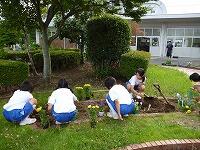 委員会活動がありました。緑化委員会では、校舎東の花壇に、マリーゴールド、ペチュニア、バーベラ、ケイトウなどの植え付けをしました。