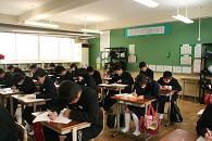 3年生は、1校時から5校時まで、全国学力・学習状況調査がありました。今回の調査は、全国の中学3年生全員が調査対象で、国語A(主として「知識」に関する問題)、国語B(主として「活用」に関する問題)、数学A(主として「知識」に関する問題)、数学B(主として「活用」に関する問題)を1時間ずつ、4時間実施し、5校時には、生徒質問紙調査を行いました。