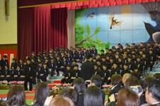 式典のクライマックスを飾る卒業生合唱では、別れの悲しさを乗り越え、巣立つ希望に満ちあふれた卒業生たちの姿に会場全体が感動の渦に包まれました。