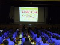 講話や交通ルールクイズなどを通して、ヘルメット着用の大切さや、一時停止の