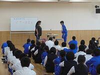 2年生が職場体験学習を前に,講師の先生を招いて,マナー講習会を実施しました。